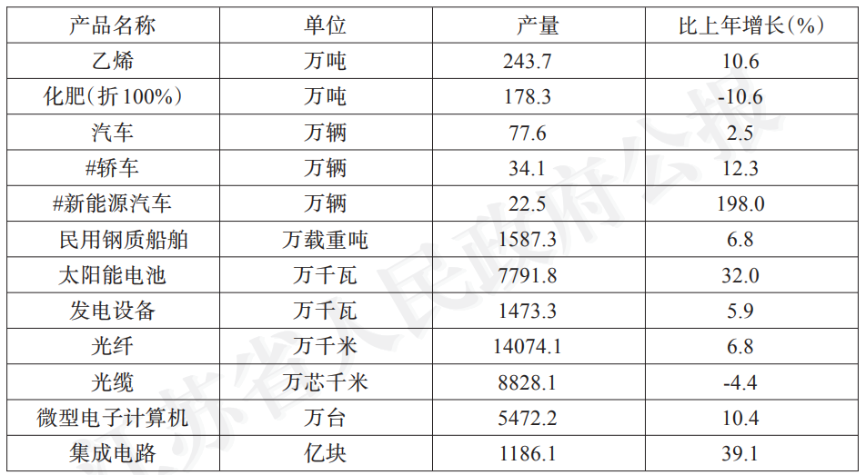 三、工业和建筑业 工业生产稳定恢复。全年规模以上工业增加值比上年增长12.8%,其中轻工业增长12.4%,重工业增长12.9%。分经济类型看,国有控股企业增加值增长7.9%,集体企业增长8.2%,股份制企业增长14.4%,外商及港澳台商投资企业增长10.7%,私营企业增长15.5%。分门类看,采矿业增长2.1%,制造业增长12.8%,电力、热力、燃气及水生产和供应业增长12.8%。 先进制造业增势良好。全省高技术产业、装备制造业增加值比上年分别增长17.1%和17.0%,高于规模以上工业4.3个和4.2个百分点;对规上工业增加值增长的贡献率达30.5%和67.3%。分行业看,电子、医药、汽车、专用设备等先进制造业增加值分别增长17.3%、11.0%、14.7%和15.9%。代表智能制造、新型材料、新型交通运输设备和高端电子信息产品的新产品产量实现较快增长。新能源汽车、城市轨道车辆、3D打印设备、集成电路、服务器等新产品产量比上年分别增长198%、5.9%、64.3%、39.1%和67.3%。